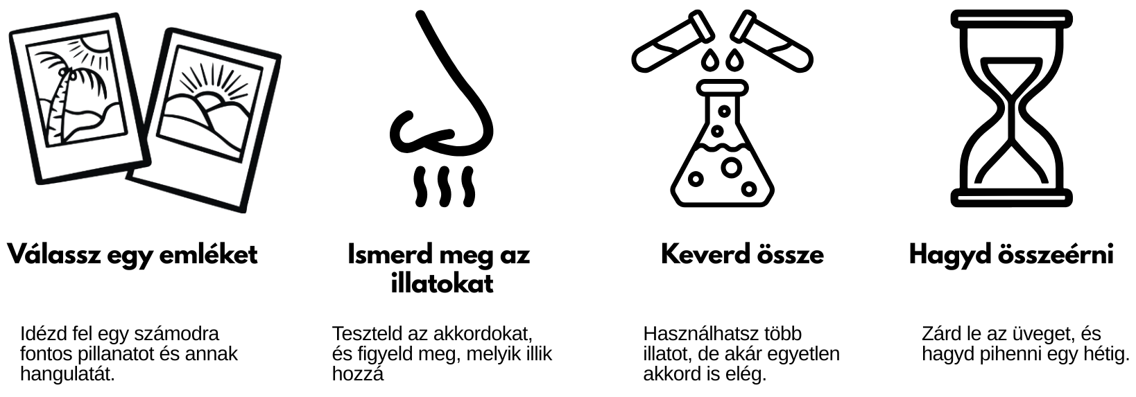 Akár egyetlen illatakkord használatával is egy kész, harmonikus parfümöt kapsz. Ha pedig több akkordot kombinálsz, akkor szabadon alakíthatod a végeredményt a saját emlékedhez igazítva.